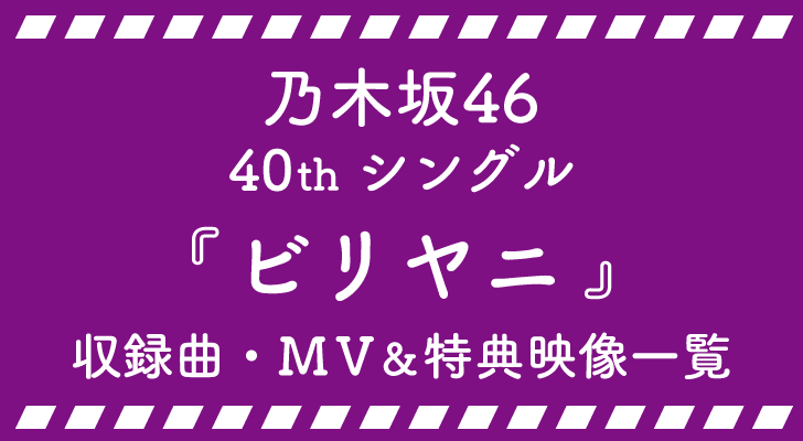 乃木坂46の40枚目シングル『ビリヤニ』の収録曲、MV&特典映像は下記のとおりとなっています。