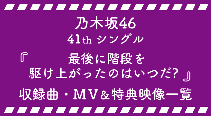 乃木坂46の41枚目シングル『最後に階段を駆け上がったのはいつだ?』の収録曲、MV&特典映像は下記のとおりとなっています。